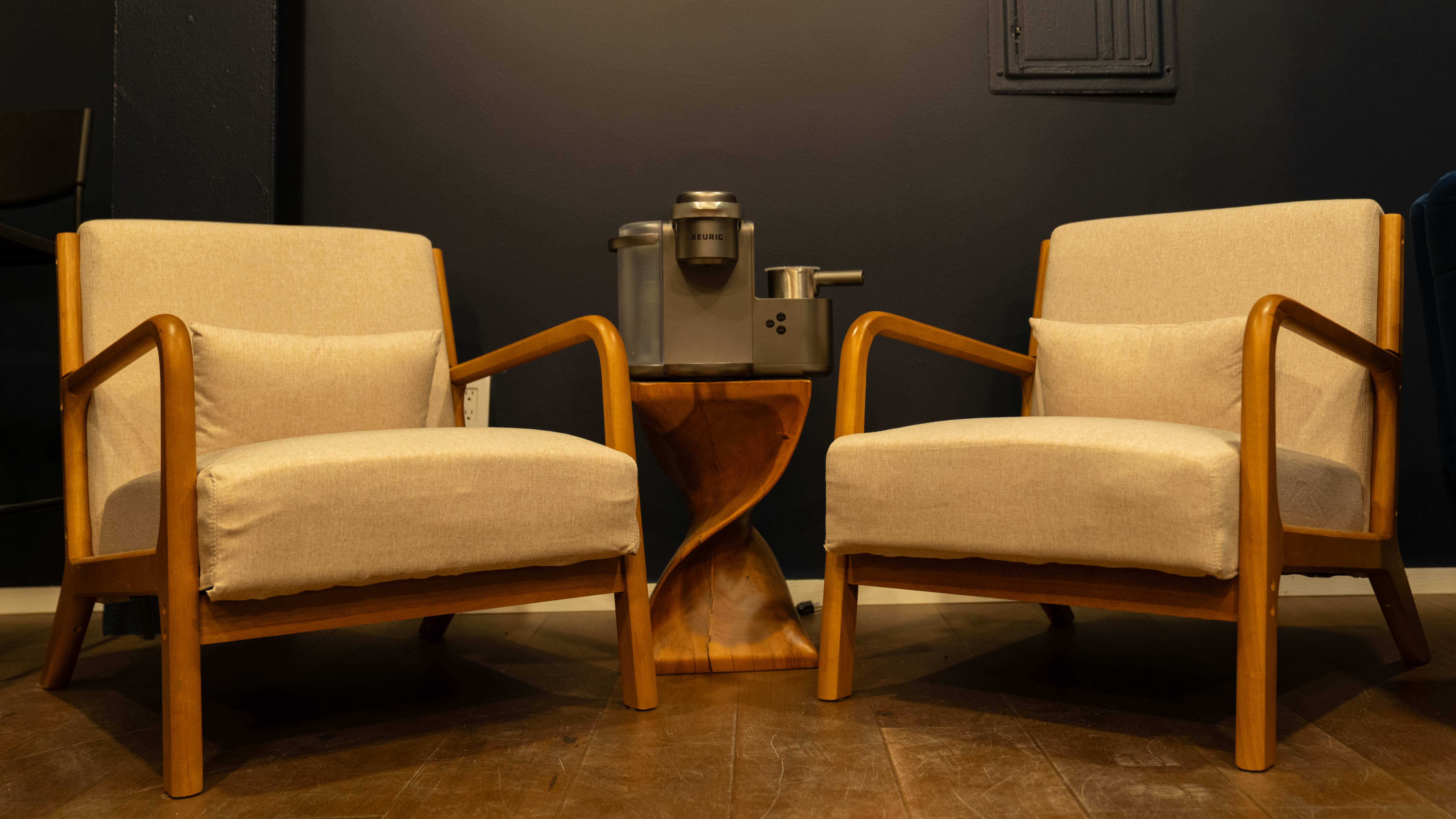 A state-of-the-art VIP lounge featuring premium coffee service, luxury seating, integrated display screens, and a fully equipped kitchen, designed to accommodate high-profile guests while providing a refined space for everyday relaxation.
